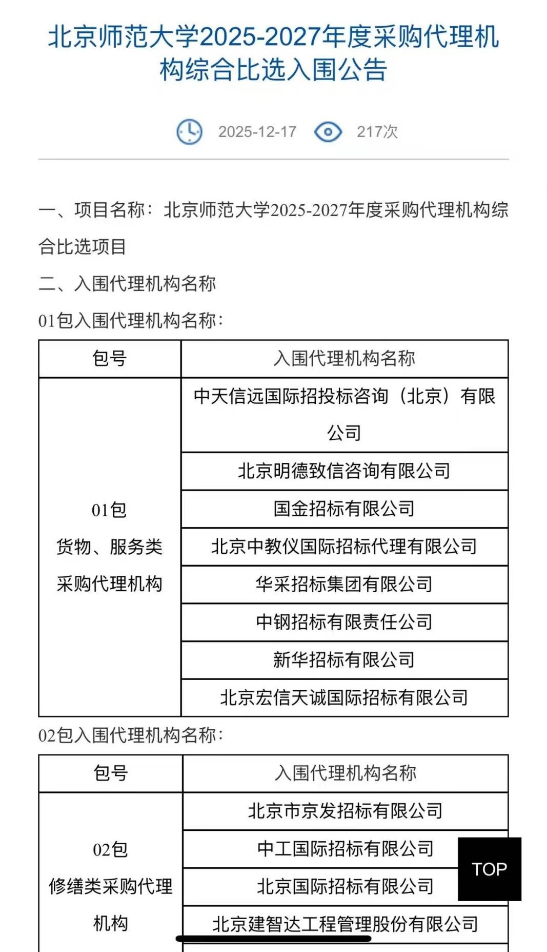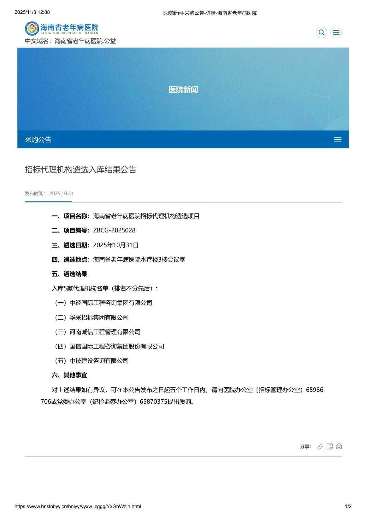 发布日期:2025-12-22 来源:ML.COM近日,ML.COM凭借专业实力与规范服务,先后成功入围北京师范大学、中央戏剧学院、北京体育大学海南国际学院、琼台师范学院等四家高校,以及北京市西城区展览路街道、海南省第三人民医院、海南省老年病医院三家政企医疗单位的招标代理机构库,实现多领域业务拓展新突破。